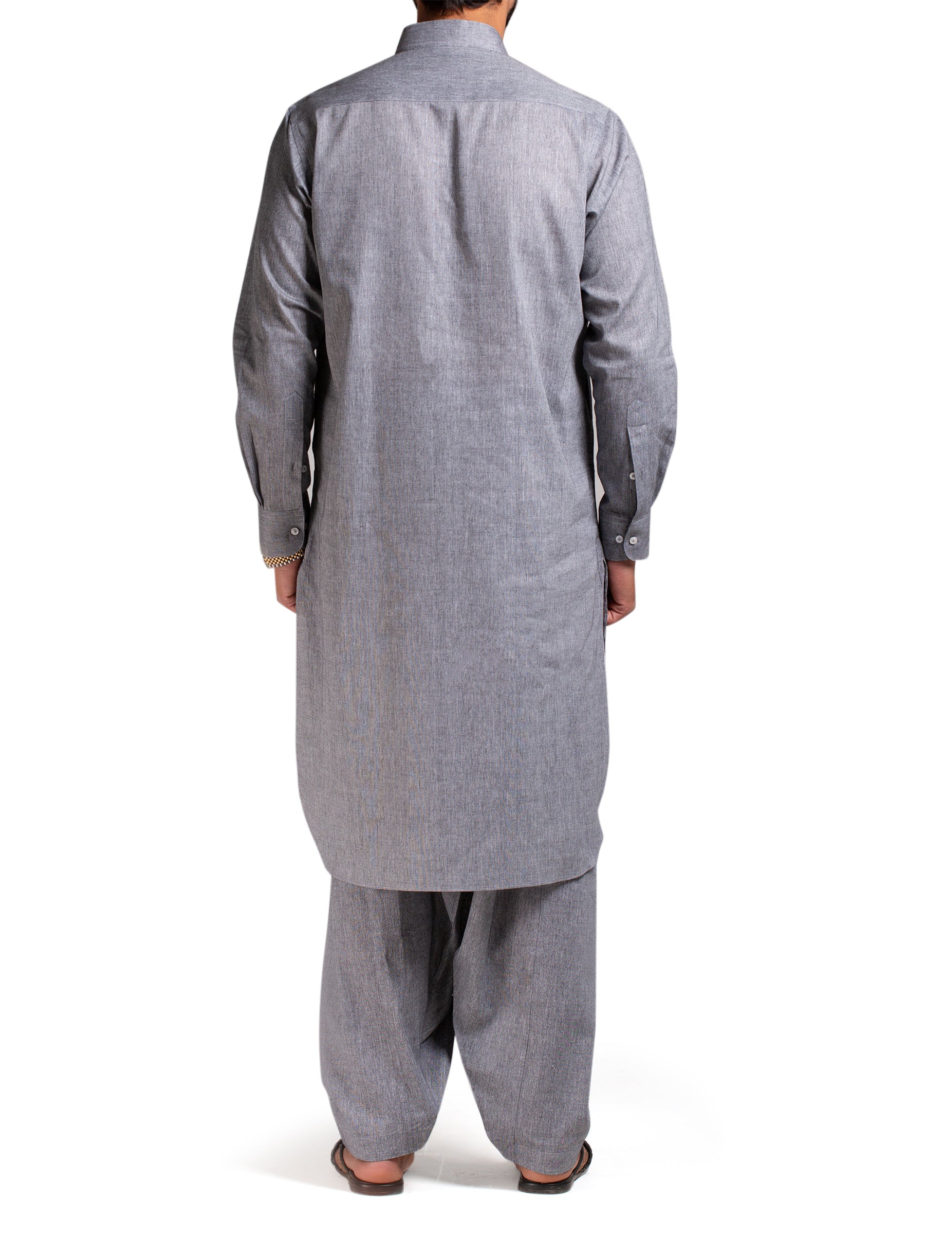 For a man who wants to look his best, embracing the cultural and sophisticated modern-day look. Our Charcoal Grey Shalwar Kameez, Pechi cotton slub fabric is the perfect choice for your meetings, and occasions.